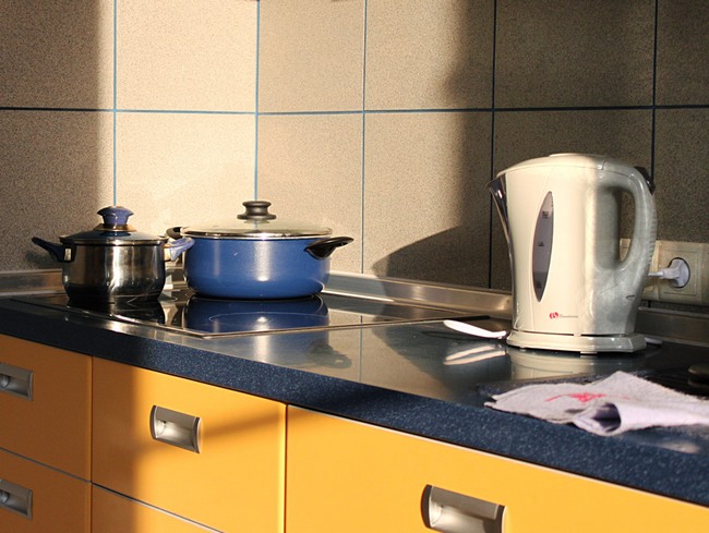 Розміри каструлі за можливістю мають збігатися з розміром конфорки. Електрочайник та інші кухонні електроприлади не залишаємо в режимі «сну». Фото: Ірина Рудська/EpochTimes.com.ua